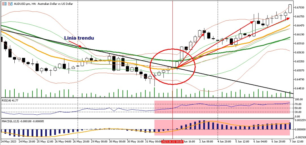 Staramy się skorzystać z momentów, gdy cena instrumentu finansowego przełamuje istotne poziomy wsparcia lub oporu, albo gdy występują korekty w obrębie trendu. Może to być jednak równie dobrze przełamanie linii istniejącego trendu, czyli początek tworzenia się nowego.