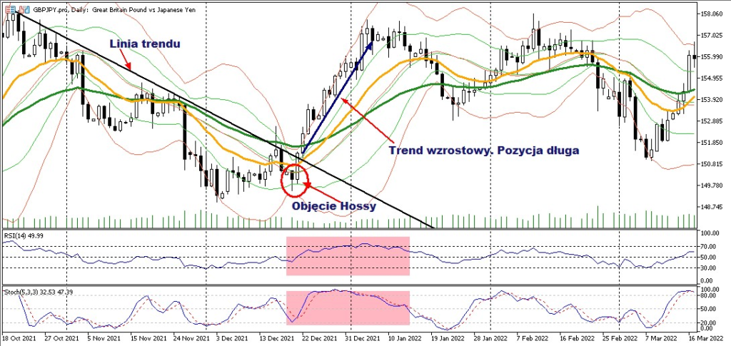 Poziomy wejścia w rynek określamy na podstawie analizy technicznej, wykorzystując narzędzia i wskaźniki generujące odpowiednie sygnały. Kluczowym elementem strategii jest także umiejętne ustalanie poziomów Stop Loss i Take Profit oraz kontrolowanie pozycji.